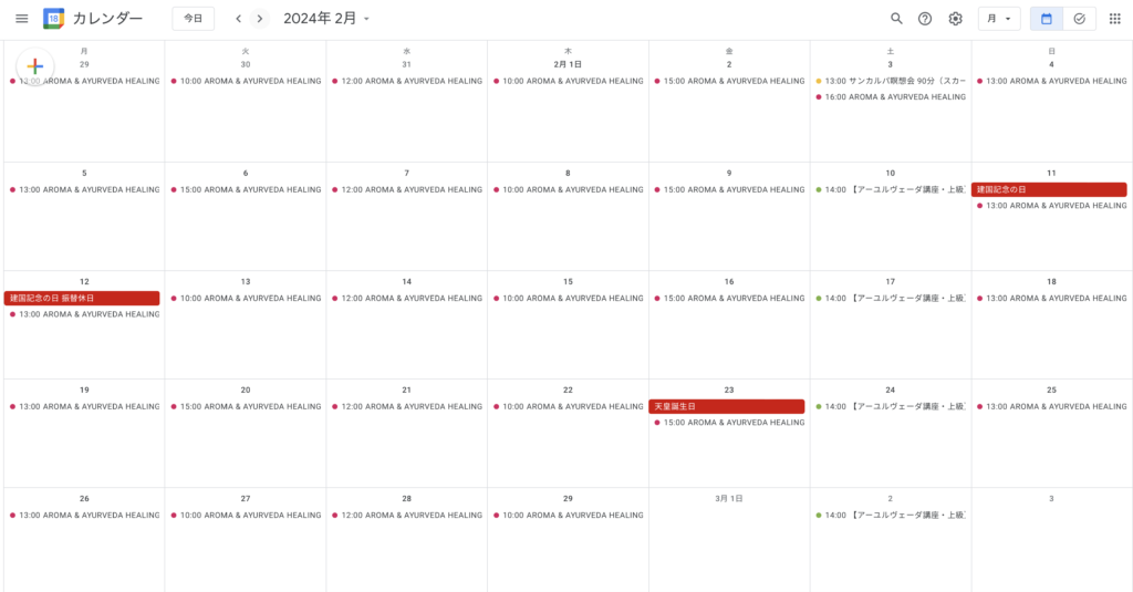 アーユルヴェーダ&アロマトリートメントのスケジュールはこちらです。