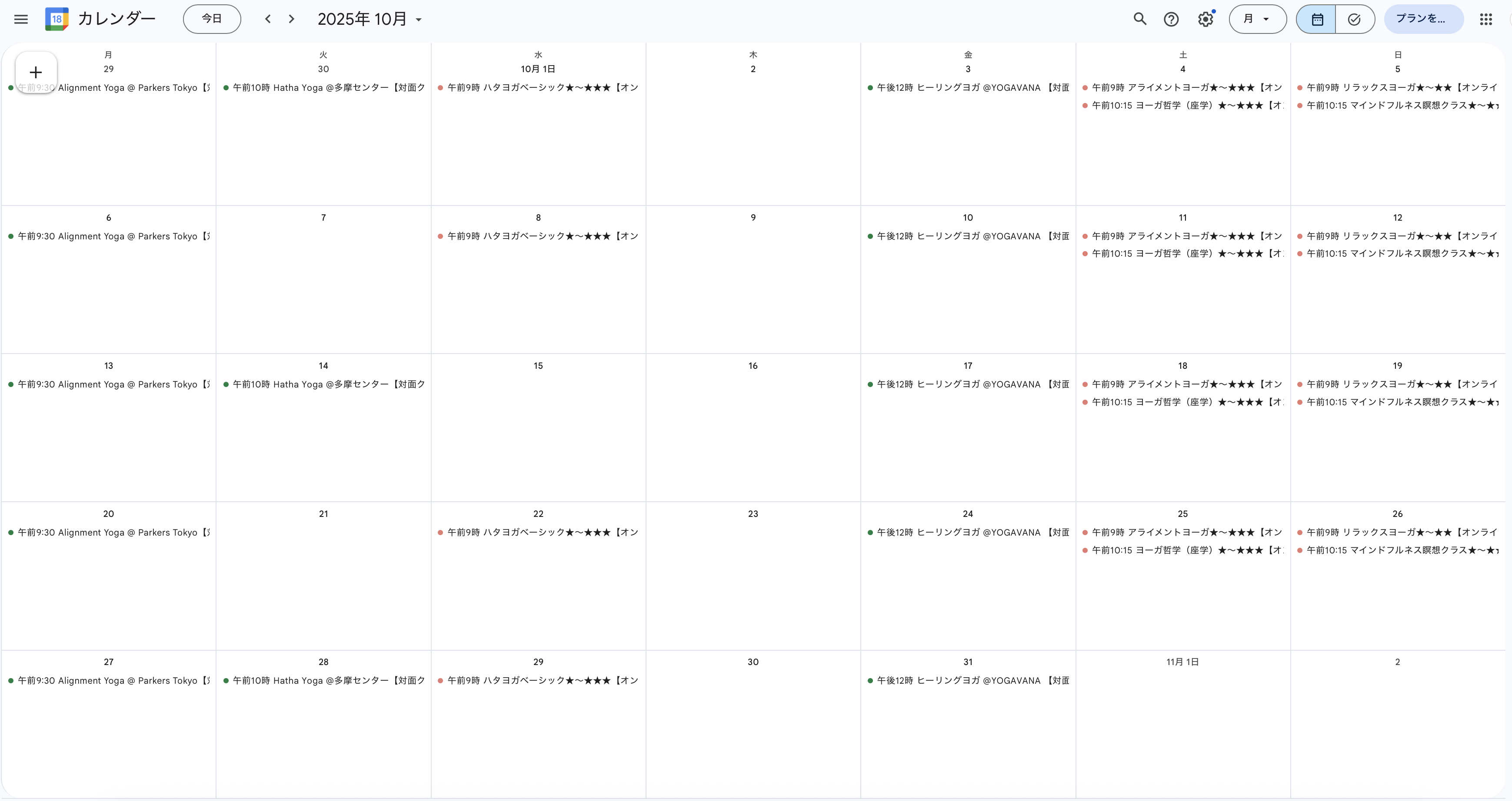 10月のアーユルヴェーダ・アロマサロンとヨガクラスの予定が決まりましたので、