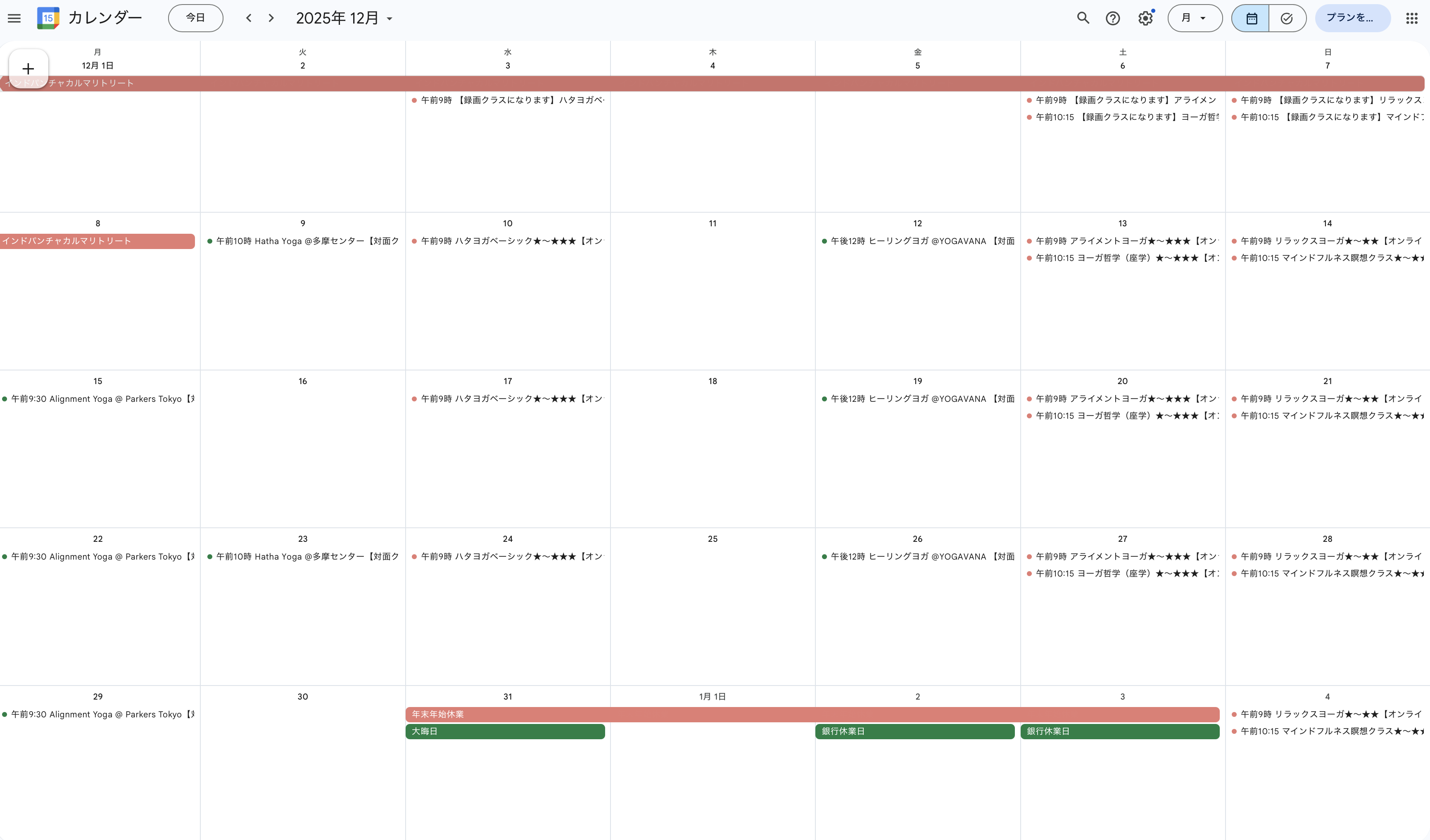 ヨガクラスも12月8日(月)まではリトリートのためお休みになります。